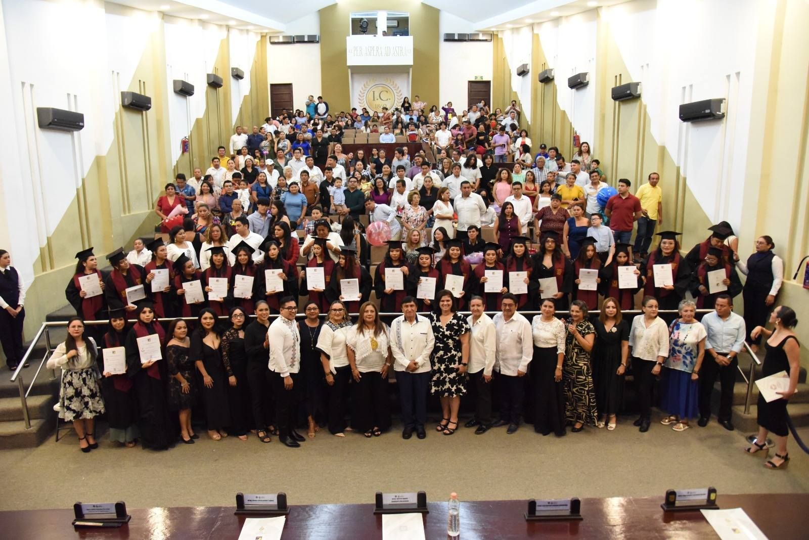 Ceremonia que estuvo presidida por el Secretario de Educación, Prof. Víctor Manuel Sarmiento Maldonado, nuestra Rectora Ilsa Beatriz Cervera Echeverría, la Directora de la Escuela Normal de Educación Preescolar, "Licda. Miriam Cuevas Trujillo", Ingrid Teresa Abreu y Abreu, quienes entregaron la carta de pasantía a las jóvenes graduadas, junto con la madrina de la generación Mtra. Ofelia Atzimba Tun Díaz.