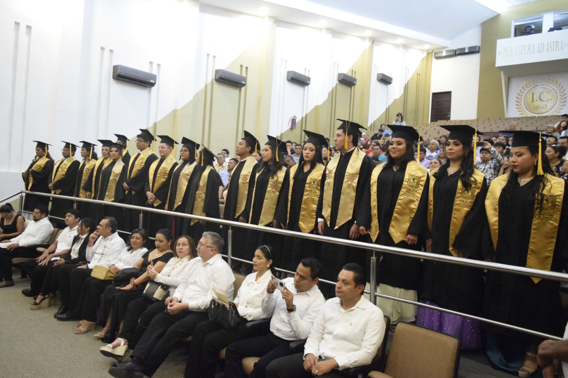 Con la representación del Secretario de Educación, Víctor Manuel Sarmiento Maldonado, asistió la Directora de Formación y Actualización Docente de la SEDUC, Dra. Olga Eugenia Casanova Rosado, así como el padrino de la generación, Mtro. César Iván Medina Atún, y las maestras asesoras de los estudiantes, Concepción Huerta Lara y Manuelita Concepción Cauich Uicab.